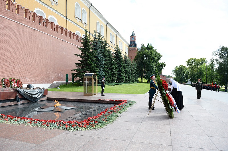 22 июня 2016 года, в 75-ю годовщину со дня начала Великой Отечественной войны — День памяти и скорби, Святейший Патриарх Московский и всея Руси Кирилл возложил венок от Русской Православной Церкви к могиле Неизвестного солдата в Александровском саду у Кремлевской стены, сообщает Патриархия.ru.