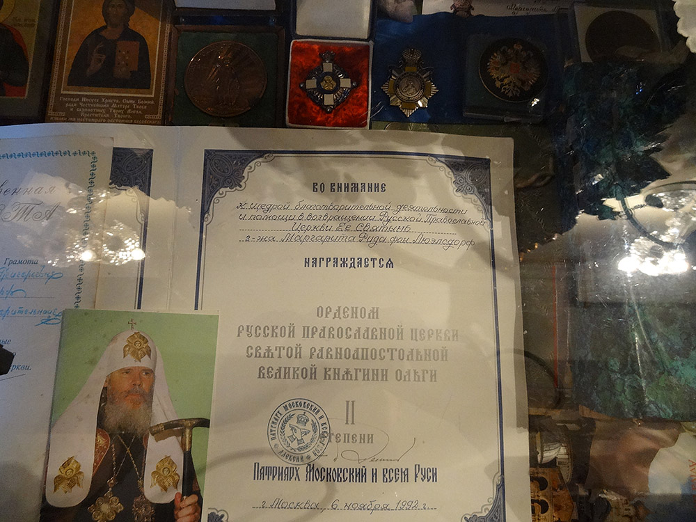 Шесть лет я трудилась в Иерусалиме, в храме святого благоверного князя Александра Невского, помогала в строительстве, в починке крыши храма. Потом я принимала участие в работе благотворительной организации «Рука оперативной помощи», возглавляла эту организацию. За благотворительность Святейший Патриарх Алексий наградил меня орденом святой равноапостольной Ольги в 1992 году. Сейчас я прихожанка Свято-Николаевского собора города Вашингтона. Вот, пожалуй, и вся моя история…