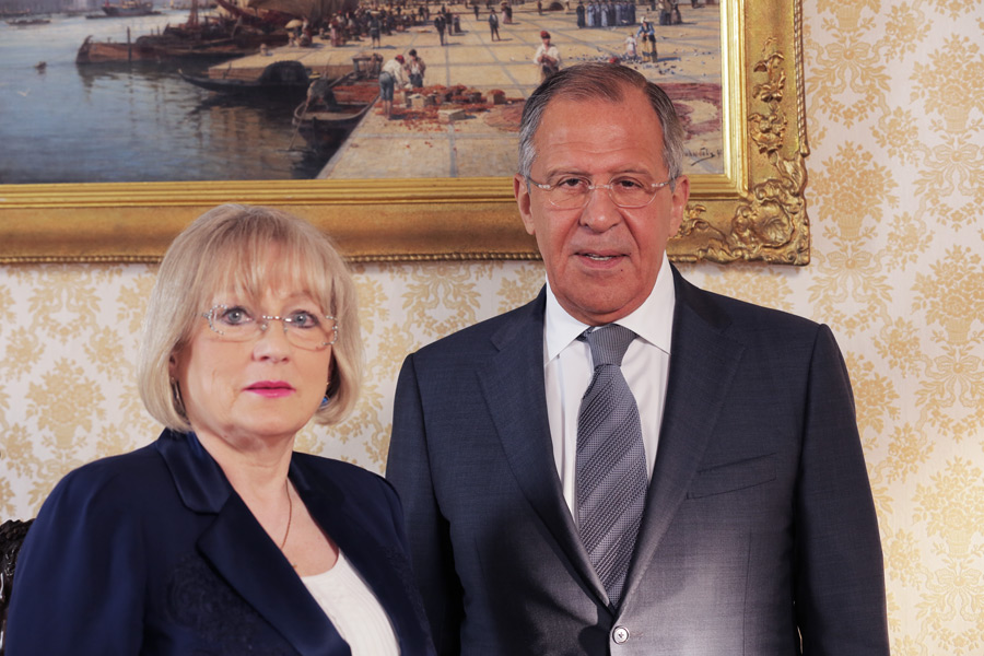 По завершении беседы Елена Агапова поблагодарила министра иностранных дел России Сергея Викторовича Лаврова за то, что он нашёл время в своём напряжённом графике и ответил на вопросы, касающиеся ряда важных аспектов международной деятельности Императорского Православного Палестинского Общества.