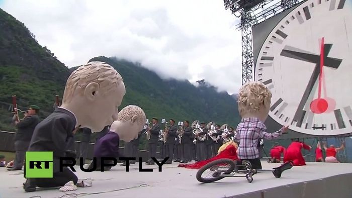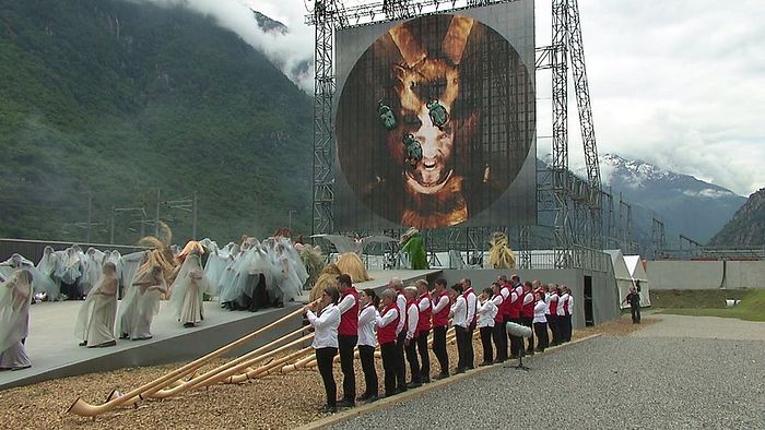 В интернете есть видео этого открытия, называется "Bizarre Opening Ceremony For Gotthard Base Tunnel In Switzerland" — только предупреждаю, сатанизм чистой воды, я был шокирован. И рядом не стояло в советским прославлением труда.