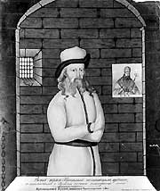 Но и там, отданный под стражу, с запрещением давать ему бумагу и чернила, он не смирился. Обаянием своей сильной личности он привлек на свою сторону не только архимандрита с братией, но и приставленный к нему караул с их начальником подпрапорщиком Алексеевским. В их присутствии он говорил "крамольные речи" о том, что императрица Екатерина II "наша не природная, да и не тверда в законе нашем и не надлежало ей престола принимать". Говорил о правах на престол Иоанна Антоновича, замечая при этом: "Лучше было, кабы ее величество за него вступила в супружество, то бы-де ей уже и престол следовал, а ее величество с ним не в ближнем родстве... И Синод бы дозволить мог". Лучше-де ей за Иоанна Антоновича идти, нежели за Орлова".