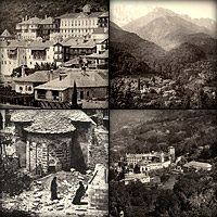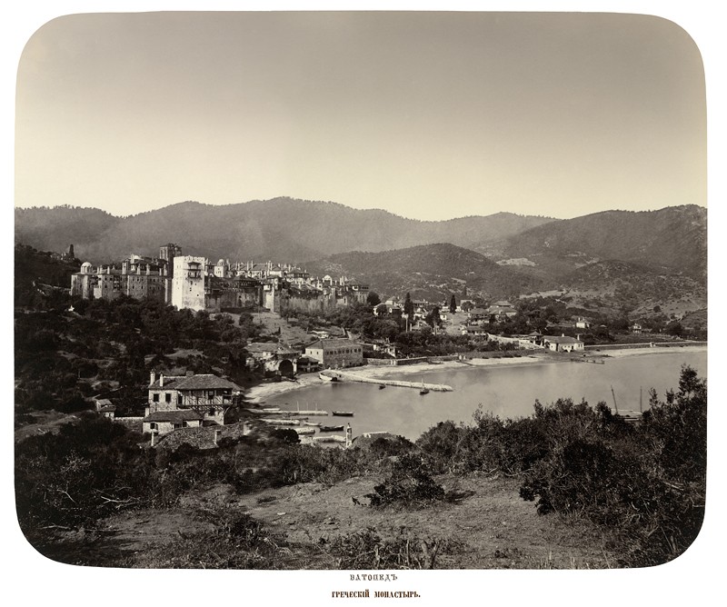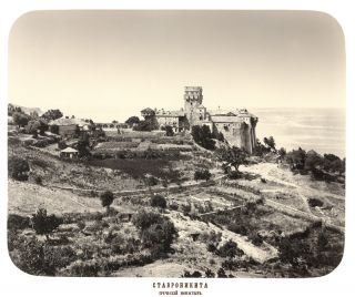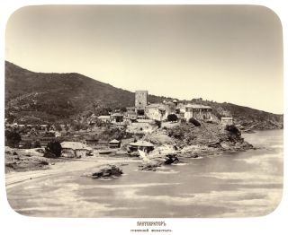 Виды старого АфонаВ Институте истории материальной культуры Российской Академии наук в Петербурге хранится фотоальбом с видами афонских монастырей и скитов, принадлежавший когда-то великому князю Константина Константиновичу Романову. Он был подарен великому князю русским Свято-Пантелеимоновым монастырем на Афоне во время посещения им святогорских монастырей в 1881 году. Снимки в альбоме датированы 1867-1872 годами. Это первая фотолетопись Афона ценна не только своим документализмом, но и является замечательным образцом фотоискусства. Известны имена фотографов: это насельники Свято-Пантелеимонова монастыря отец Леонтий и отец Геннадий. Ни одна из существующих ныне афонских обителей не сохранилась в неизменном виде - во второй половине ХIХ-начале ХХ веков многие здания были перестроены. Однако, когда делались фотографии, вошедшие в альбом великого князя Константина, обновление только начиналось, поэтому уникальные снимки дают картину Афона и ХVII-ХVIII вв., без больших соборов и других масштабных построек.