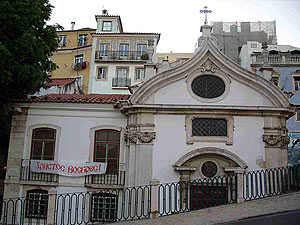 Всехсвятский приход расположен недалеко от Центрального железнодорожного вокзала. И хотя в руках у меня была карта, я никак не мог сориентироваться в хитросплетении лиссабонских улиц. Только увидев (неожиданно для себя) белый храм с надписью «Христос Воскресе» (как раз был период между Пасхой и Вознесением), я понял, что вышел к русской церкви.