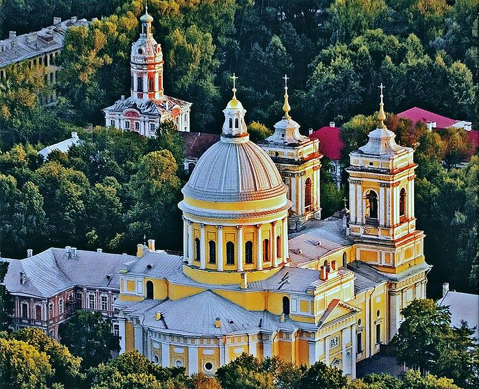 Вскоре после коронации императрица Екатерина II приступила к выбору проекта нового главного собора Александро-Невского монастыря – к тому времени храм из-за ветхости был разобран[20]. В Троицком соборе (1776–1790) Александро-Невской Лавры философские идеи европейских классических построек были воплощены максимально полно. Кроме того, после освящения собора внутри его были размещены полотна европейских художников на библейские темы, что придавало всему внутреннему убранству торжественный и строгий, но одновременно дворцовый вид.