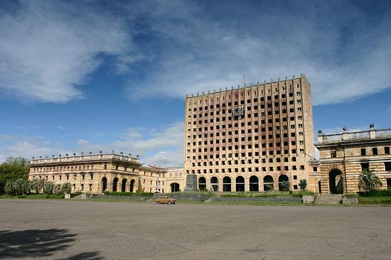 Сухуми, или как сейчас его принято называть — Сухум, мы увидели под утро. Въезжая в город, испытываешь настоящий шок. Представьте себе дорогу, вдоль которой стоит несколько многоэтажек. Ни одного горящего окна. Оно и логично: ночью люди спят. Подъезжая ближе, догадываешься, что высотки нежилые. В их стенах множество дыр, и понимаешь, что, скорее всего, эти дома расстреливались из пушек.
