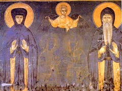 Пятнадцать лет Растко воспитывался под родительским покровом, и хотя ему дали доброе христианское воспитание его вовсе не готовили для духовного пути. По мере того как мальчик рос и мужал, все больше и больше проявлялись сокрытые в нем душевные и умственные дарования. Видя это, Стефан Неманя решил, что передаст в будущем управление Сербским государством в руки Растко, полагая, что он станет лучшим правителем, чем его старшие братья. Стефан готовил своего младшего сына для роли мирского владыки, не подозревая, что тот станет владыкой духовным. Когда юному князю исполнилось пятнадцать лет, он получил от своего отца в удел Захолмскую область (современная Герцеговина), чтобы научиться всем премудростям управления, необходимым для наследника Престола.[5] Но богатство и роскошь княжеского двора, с ее великосветскими забавами была чужда душе и уму молодого Растко. Он стал жить своей, обособленной от всякого мирского попечения жизнью, часто посещал храмы, постился, много времени уделял молитве. Когда Растко исполнилось восемнадцать лет, его родители захотели, чтобы он вступил в брак,[6] но в сердце благочестивого юноши жила только одна пламенная любовь к Богу и ревностное желание служить Ему одному. Растко задумался о полном отречении от мира. При царском дворе своего отца он много слышал о Святой Горе Афон, о постниках и молитвенниках, населявших ее. Ведь к жупану Стефану часто приезжали иноки за милостыней и восторженно рассказывали о монашеских подвигах и подвижнической жизни на Святой Горе. Однажды, когда Растко приехал из своего удела навестить отца, он познакомился с русскими иноками, прибывшими из Афона. Среди них был один, который с особым пламенным чувством рассказывал об обителях и монашеской жизни. Взволнованный княжич пригласил этого инока к себе и тайно расспросил его об образе жизни монахов на Святой Горе. Картина безмятежной, душеспасительной жизни, свободной от всяких мирских забот, посвященной одной только молитве и благочестивому созерцанию, картина подвигов добродетелей афонских иноков восхитила благочестивого юношу, у которого от избытка сердца заговорили уста: «Вижу, что Бог, зная болезнь сердца моего, послал твою святость утешить меня. Теперь я понял, чего я так сильно желал. Блаженны те, которые сподобились проводить такую безмятежную жизнь! Что мне делать? Как избавиться этой суетно жизни? Я не хотел бы оставаться ни одного дня, убежал бы в святую гору, если бы не боялся препятствий со стороны своих родителей».[7] С такими словами обратился Растко к монаху. Видя в юноше искреннее желание иноческой жизни, старец взялся довести его до Афона. Под предлогом охоты за оленями, княжич покинул дом отца, и отделившись вместе со старцем от свиты, устремился на Афон. Когда исчезновение Растко было обнаружено, его родителям не трудно было догадаться, куда он, склонный к иноческой жизни, скрылся вместе с русским иноком. Стефан послал одного из главных своих сановников отыскать и вернуть сына, если понадобиться, то и силой. Получив от греческого императора Исаака Ангела (1185-1195) строгое предписание к Проту (настоятелю) Афонской Горы и ко всем инокам вернуть юного княжича домой, военный отряд начальника Солунской области явился на Святую Гору и нашел беглеца в русском Пантелеимоновом монастыре.[8] Растко был еще в мирской одежд