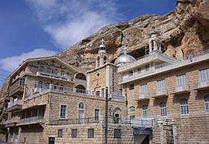 Монастырь находится в 60 км от Дамаска. Рядом расположено