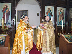 После беседы состоялась праздничная всенощная в сослужении благочинного Нагоя священника Георгия Мацусима, иеромонаха Герасима (Шевцова), священника из Тоёхаси Исайи (Сакаи) и диакона собора Николай-до Павла Наканиси. Эта служба была, пожалуй, наиболее полной всенощной в современных православных приходах Японии. Совершенная по уставу Троице-Сергиевой лавры с минимальным количеством сокращений, она продолжалась три часа – в два раза дольше, чем обычные субботние и праздничные вечерние богослужения в Японии.