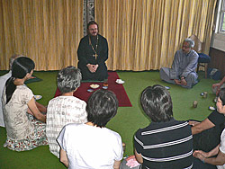 Рассказ об Иисусовой молитве оказался достаточно новым для православных верующих Японии. Поэтому иеромонах Герасим на время отлучился из зала, а затем вернулся с афонскими четками и показал, как совершается эта молитва.
