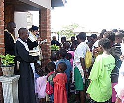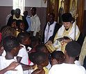 Религия: язычники – 74 %, христиане (католики и протестанты различных направлений) – 25 %, индуисты и мусульмане – 1 %. Православие. Православие присутствует в Зимбабве с начала XX века. Долгое время оно было уделом иммигрантов из традиционно православных стран. Но последние 15 лет большая миссионерская работа ведется православными священниками – урожденными зимбабвийцами. Один из них – отец Рафаил Ганда. К Православию он пришел в Греции, где в 1993 году обучался на курсах молодых офицеров. Выучив греческий язык, он стал посещать православные службы на военной базе. Вернувшись в Зимбабве, он узнал, что в столичном городе Хараре также есть православный храм. Он и его жена Марфа Мария стали прихожанами этой церкви. В сентябре 1994 года после курса катехизации Рафаил и его семья были крещены, а через три месяца, в 1995 году, Рафаил отправился в семинарию Патриарха Макария III в г. Найроби (Кения) для изучения богословия. После трехлетнего обучения Рафаил вернулся в Зимбабве, исполненный рвения поделиться полученными знаниями со своими соотечественниками. В ноябре 2001 года он был рукоположен в сан диакона, а в августе 2002 года – во священника. Отец Рафаил проходил начало своего служения под духовным руководством преосвященного Феодора, нынешнего Патриарха Александрийского.