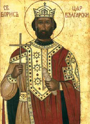 Придя к власти в 852 году, Борис вначале обратился к латинским миссионерам, поскольку в то время Болгария заключила военный союз с франками против моравского князя. Но вскоре Борис осознал религиозное и культурное превосходство Византии. Он попросил императора Михаила III крестить его самого и весь его народ. Князя крестили с великим торжеством в 864 году в городе Плиске – древней столице Дунайской Болгарии. Для этого события специально приехал епископ из Византии. Борис был наречен Михаилом – по имени своего крестного отца императора Михаила. Вслед за ним обратилась большая часть народа – бояре и люди всех сословий. Патриарх Константинопольский святой Фотий (память 6 февраля) направил князю письмо, в котором разъяснял обязанности христианского государя. Затем он послал в Болгарию миссионеров. Борис стремился устроить юную Церковь по примеру Византийской и надеялся добиться ее самостоятельности. Константинополь отнесся к этому неблагосклонно, и Борис обратился к папе Римскому. Тот послал в Болгарию миссионеров для распространения литургической практики латинской Церкви и ее ложного учения об исхождении Святого Духа и от Сына. Однако царь очень скоро понял, как опасно зависеть от Запада не только с церковной, но и с политической точки зрения, и изгнал из Болгарии латинских миссионеров. В марте 870 года Собор подчинил Болгарскую Церковь Константинополю. Из Византии прибыл архиепископ в сопровождении десяти епископов. Он обосновался в Преславе, откуда руководил юной Церковью. Впоследствии патриарх Игнатий послал в Болгарию клириков возглавить местное духовенство. В 885 году пять учеников святых Кирилла и Мефодия – Климент, Наум, Ангеляр, Горазд и Савва, так называемая Охридская пятерица, – взяли на себя выполнение миссионерской задачи. Они проповедовали веру на славянском языке и постепенно крестили весь народ. Скоро благодаря поддержке царя Болгарская земля процвела храмами, в которых воздавали хвалу Господу Богу на славянском языке. В 888 году царь Борис-Михаил отрекся от престола и ушел в монастырь. Но когда его сын Владимир (888–893) начал разрушать все созданное отцом и поощрять язычество[1], Михаил сменил монашескую одежду на военную. Он лишил Владимира трона и посадил вместо него младшего сына Симеона. Восстановив порядок, Михаил вернулся в монастырь и всю оставшуюся жизнь провел в подвиге, молчании и молитве. Он упокоился в мире 2 мая 907 года[2].