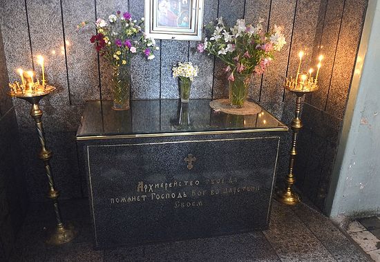 А вот дар любящих чад: красивая гробница бывшего настоятеля храма, прославленного ныне в лике святых, – митрополита Зиновия (Мажуги). Над ней висит большая икона святого Серафима Саровского, а рядом икона святых архангелов. Напротив алтаря – очень красивая и редкая икона юной Нино, просветительницы Грузии. А во дворе церкви могилы. Вот могилка отца Виталия. Вот он, родной и любимый всеми. Встречает каждого приходящего и утешает его своей любовью. Люди идут к отцу Виталию бесконечным потоком, с утра до позднего вечера. И никто не удивляется, видя одних и тех же людей, бывающих здесь ежедневно. Потому что люди заходят сюда постоянно, часто даже перед работой, чтобы взять у батюшки благословение.