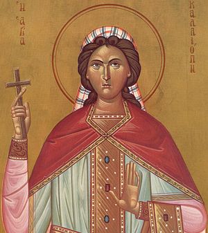 Святая Каллиопа[1] жила в правление императора Деция (250). Она просияла как чистотой души, так и телесной красотой. Остановленная язычниками, христианка с ревностью исповедала свою любовь ко Христу и претерпела за нее побои и мучения. Палачи отрезали ей грудь, но Ангел Божий исцелил ее. Потом святую бросили на острые глиняные осколки, жгли тело факелами, посыпали раны солью и терли их щетками. После этого мученице отрубили голову. Так святая Каллиопа удостоилась победного венца.
