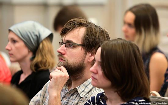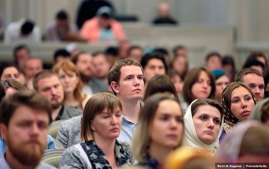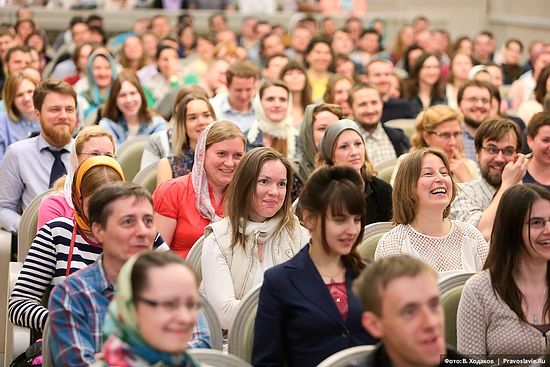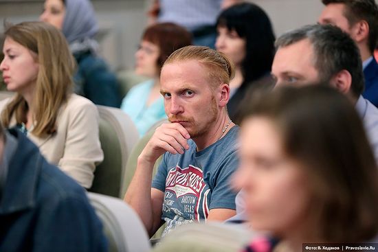 Глядя на фото, не могу удержаться, чтоб не написать: отец Тихон, Вы очень хорошо вписались в аудиторию слушателей до 35 лет - ничуть не старше выглядите. )