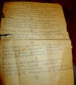 При этом она всегда приходила к исповеди и принимала святое Причастие, приглашала дедушку и в свой дом. Она относилась к дедушке с трогательным почтением и в своих записочках к нему называла его «глубокоуважаемый».
