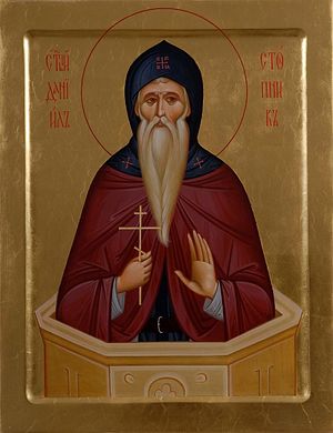 Якоже звезда многосветлая, ты возшед блаженне на столп, мир просветил еси преподобными делы твоими, и тьму прелести отгнал еси, отче. Темже молим тя: и ныне облистай в сердцах раб твоих незаходящий свет разума.