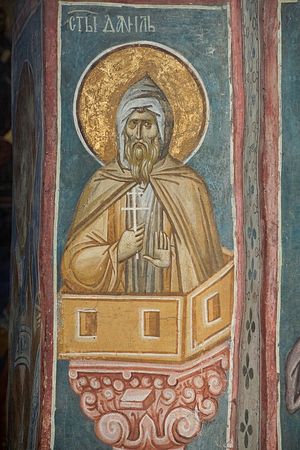 Терпения столп был еси, ревновавый праотцем преподобне: Иову во страстех, Иосифу во искушениих, и бесплотных жительству, сый в телеси, Данииле отче наш. Моли Христа Бога спастися душам нашым.