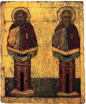 В это время пришел из Антиохии к царю ученик преподобного Симеона Столпника Сергий и принес ему куколь[11] преподобного Симеона, присланный в дар царю на защиту его от всякого зла. Но так как душа царева была направлена на земные попечения и он весь поглощен был мирскими занятиями, то Сергий надумал уйти от него и вернуться назад; и захотелось ему побывать в монастыре Неусыпающих[12]. Когда он вместе с другими плыл мимо того места, где подвизался преподобный Даниил, некоторые вспомнили о нем — в каком терпении проводит он жизнь свою, а также и то, что он получил от Бога дар исцелять недуги и прогонять бесов. Услыхав о сем, Сергий велел кораблю пристать к берегу и отправился к преподобному Даниилу. Тот принял его с любовью, и Сергий, после довольно продолжительной беседы убедившись в том, что на Данииле почивает дух Симеона, как дух Илии на Елиссее (см. 4Цар. 2:15), отдал ему тот дар, который он нес с собою, то есть куколь Симеона, ибо ему, Даниилу, он приличествовал более, чем кому-либо иному.
