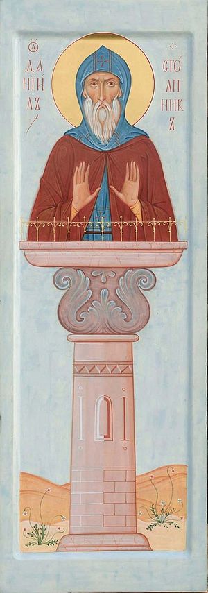 Но голубь улетел в вышину и после этого стал невидим. Поняв из этого, что Бог указывает ему здесь место к устроению столпа, Сергий возвратился к Даниилу и передал ему о всем, что он видел и слышал. Обрадованный Даниил упросил друга своего, некоего Марка, устроить ему столп. Марк, при помощи Божией, быстро выстроил столп. Когда окончена была постройкою и крыша его, преподобный Даниил вышел ночью из того храма, чтобы никто о нем не знал и, придя к столпу, помолился Богу: