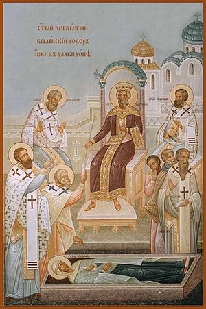 Огромное значение, в изложении православного учения о человеческой природе Спасителя, имеет вероопредение IV-го Вселенского собора. К этому времени большую силу набрало монофизитство, последователи которого, ловко манипулируя текстами Священного Писания и предшествовавших Вселенских соборов, отстаивали свои богословские позиции[6], отвергая единосущие нам Христа по человечеству. Поэтому необходимо было провести четкую грань между православием и несторианством, с одной стороны, и православием и монофизитством, с другой. И это было сделано в знаменитом Халкидонском вероопределении. В нем же содержатся важные положения относительно человеческой природы Спасителя, на которых мы остановимся подробнее.