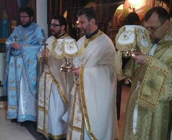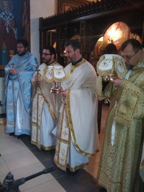 Саслуживали су презвитер Александар Миленковић, парох пасипољански, презвитер Марко Милетић, парох кочански, као и братство цркве Успења у Доњој Врежини. У овом приградском храму налази се престона икона и делић моштију Светог Владике, који је столовао у трону нишких епископа од 1913. до 1933. године. Владика Доситеј је осветио храм Успења Пресвете Богородице.
