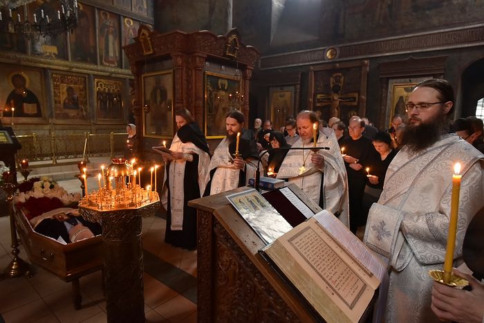 Отпевание возглавил игумен Киприан (Партс) в сослужении братии монастыря.