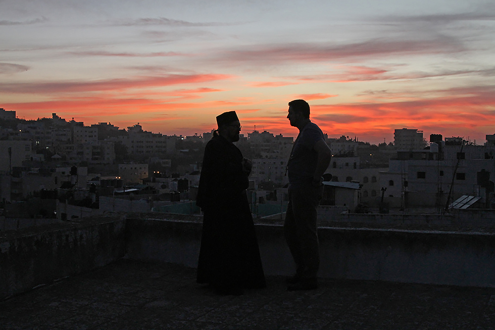 Поднимаемся на крышу братского корпуса, чтобы полюбоваться «огненными языками» хевронского заката. Пока идем по узкой лестнице, батюшка предостерегает, чтобы никто не оступился и не упал, – он знает тут каждый сантиметр. На крыше под звуки муэдзинов, среди зажигающихся окон домов мусульманского города мы говорим о монашеском пути нашего собеседника.