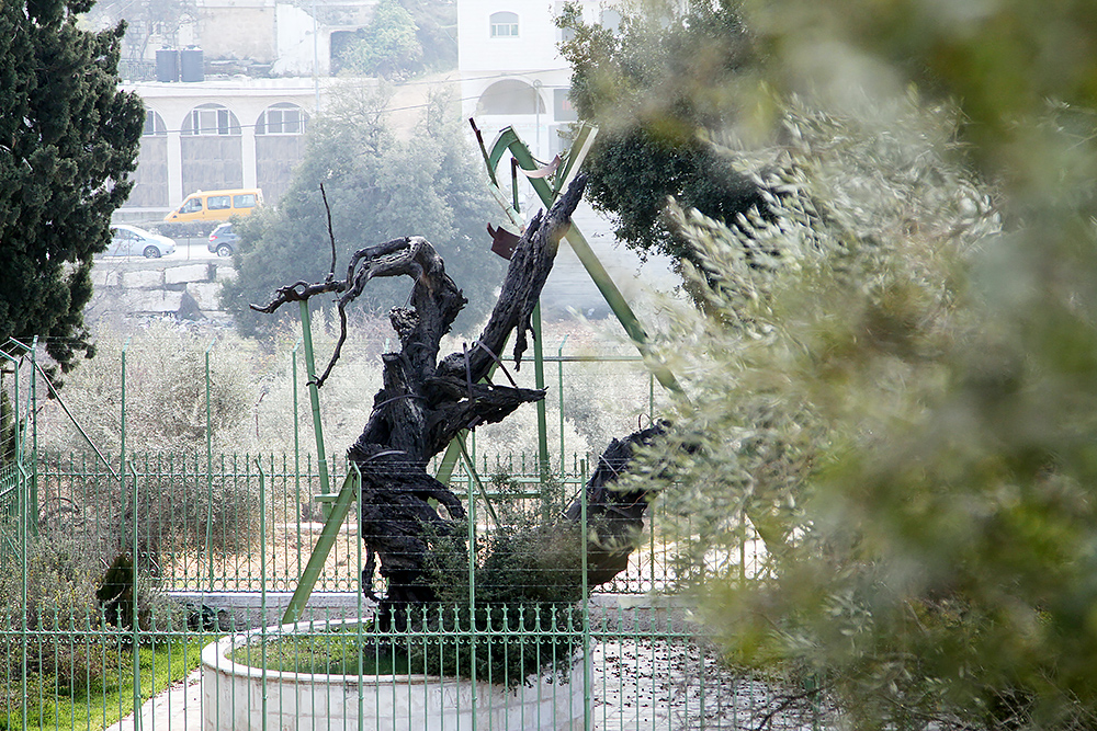Дальше дорога огибает Мамврийский дуб. К 170-летию Русской духовной миссии в Иерусалиме ведутся работы по его консервации, защите древесины от гниения и вредителей. По светскому образованию отец Алексий агроном, поэтому к данной работе у него обстоятельный, научный подход. Впрочем, как и ко всему, что он делает.