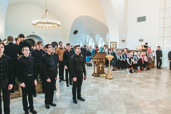 Ну и наконец, last but not least, наш гимназический хор. Во время вступительных экзаменов у нас проходит прослушивание, в результате которого формируются богослужебный и концертный хоры. Богослужебный хор, поющий на всех службах, за которыми молятся гимназисты, меньше концертного: туда попадают лучшие. Концертный хор, состоящий примерно из 30 человек, представляет гимназию на всевозможных мероприятиях и фестивалях и является нашей «визитной карточкой». Пение в хоре и спевочный процесс отнимают много времени и сил, но это стоит того: ребята достигают больших успехов. Кроме того, очень важно, что хор – приобщение к богатейшей русской церковной и светской музыкальной культуре.