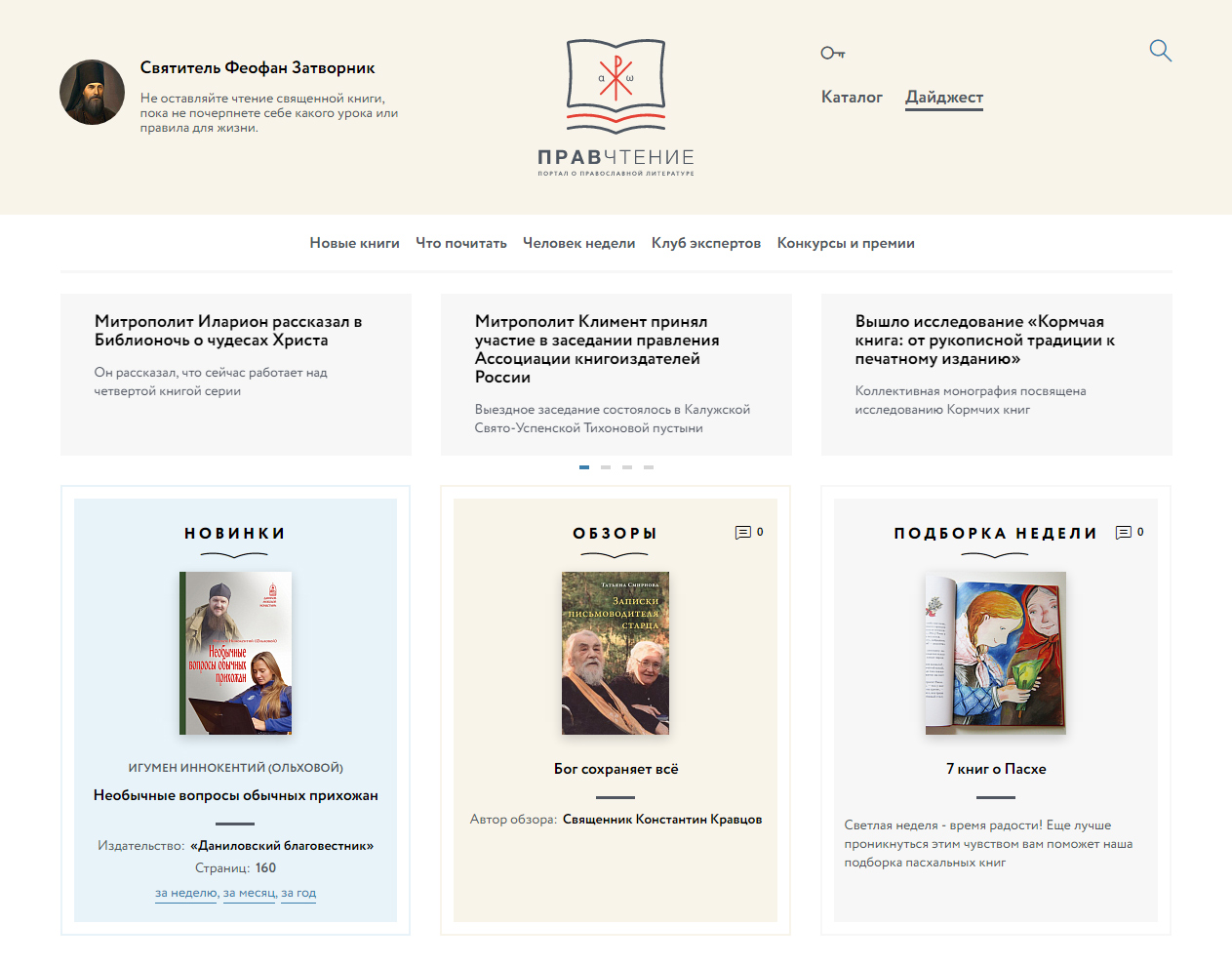 На портале «Правчтение» можно узнать обо всем, что происходит в современном православном книгоиздании, получить целостную картину этого и подобрать нужную книгу, которая имеет гриф Издательского совета.