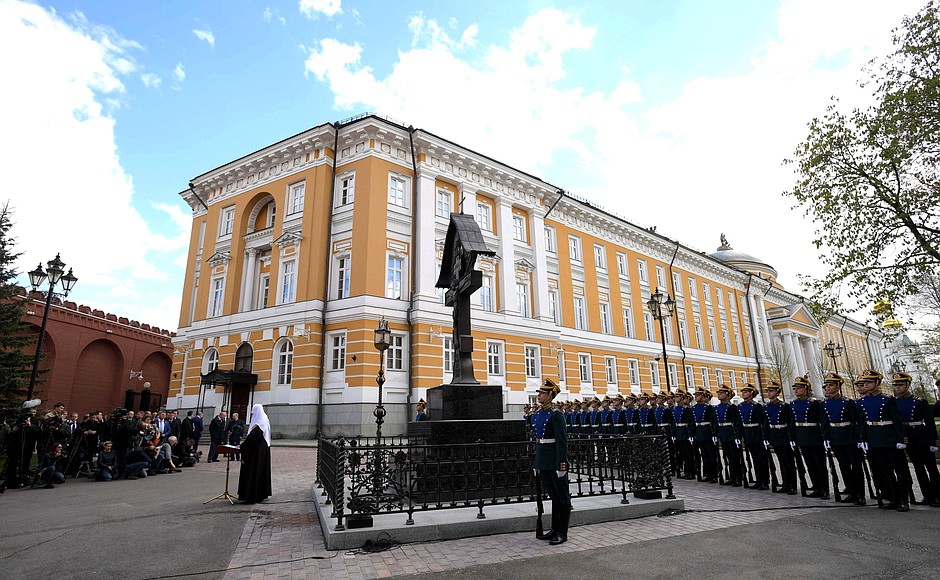 Святейший Патриарх Кирилл совершил заупокойную литию на месте гибели Сергея Александровича. Были вознесены молитвы о упокоении души «усопшего раба Божия приснопамятного великого князя Сергея Александровича». Затем Предстоятель Русской Православной Церкви совершил чин освящения памятника-креста.