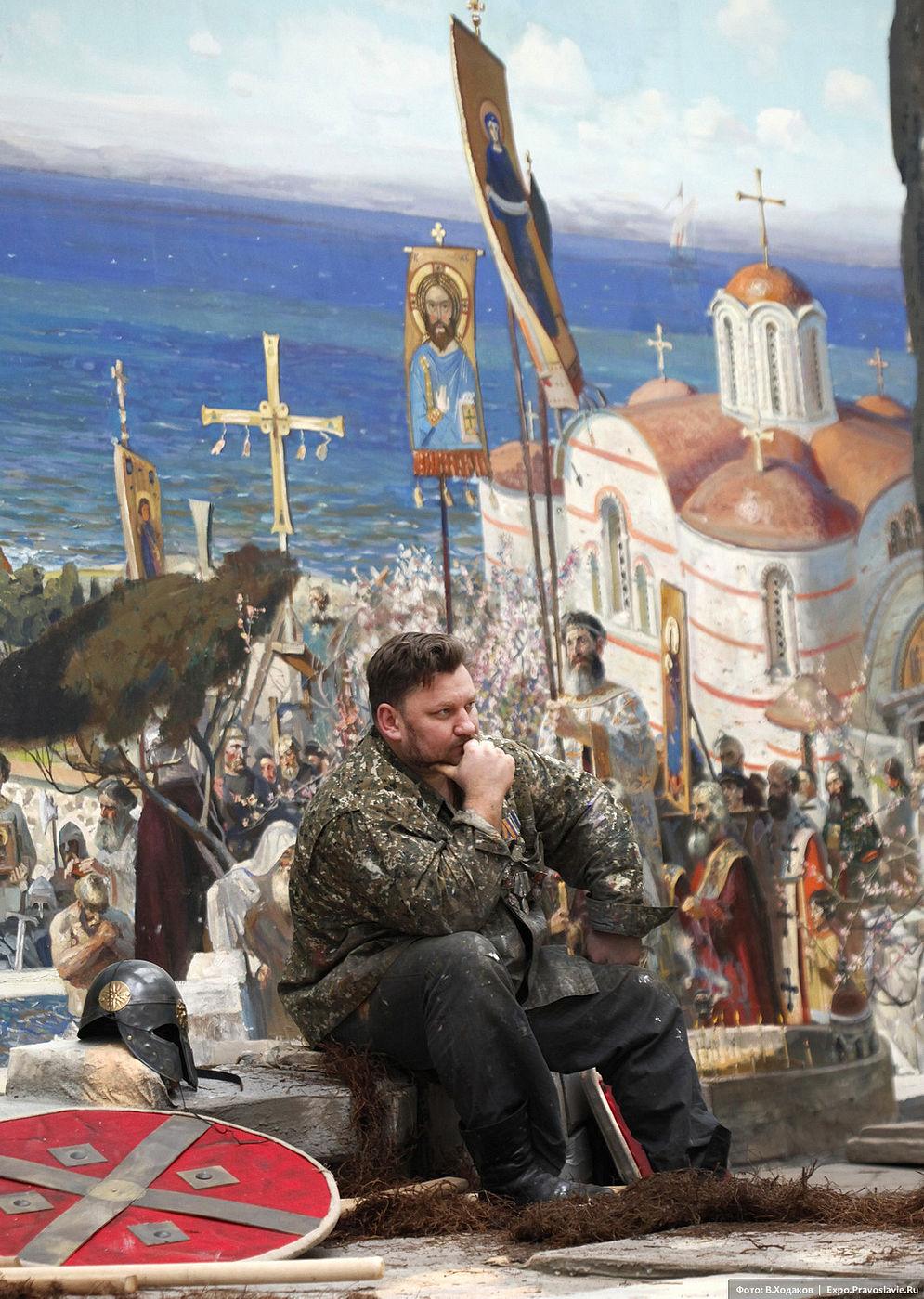 И когда пришла весть о скоропостижной кончине Павла, мы были потрясены. Картина не состоялась, но идея осталась. А Павел провел огромную работу: он спускался в отсеки подлодок, делал зарисовки подводников… Он скончался в 2014 году, в возрасте 43 лет, и сейчас мы делаем памятную выставку с помощью его вдовы Анастасии. Выставка картин поедет по всем гарнизонам, домам офицеров, культурным центрам епархии, по всем удаленным точкам, и везде мы будем говорить о великой истории нашей великой страны. И о том печальном юбилее, который проходит в этот год в России, – столетии страшных потрясений, радикально изменивших «генетический код» народа, вызвав синдром болезни «Ивана, родства не помнящего». И нет более важной задачи, чем исцелить душу нашего народа.