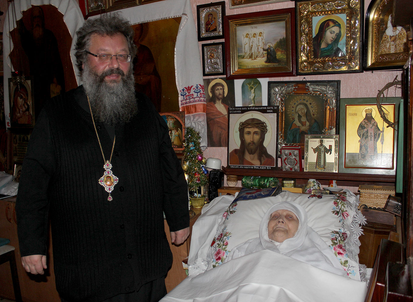 – Матушке эти отпущенные каждому из нас сроки были открыты. Но она не всем про это говорила. Скажешь человеку – а он неизвестно как на это отреагирует, – поясняет благочинный Даниловского благочиния Москвы протоиерей Олег Воробьев. – А, помню, я однажды был в Иерусалиме, позвонила матушка: «Передай такому-то: пусть каждый день служит и причащается». Буквально в ближайшие дни встречаю этого священника, который был всего-то один раз у матушки. «Тебе матушка просила передать…» – «Зачем?» – «Ну, зачем?!»… И именно в этот день, когда матушка звонила, через год этот батюшка преставился. Ему она открыла, потому что он построил храм архангела Гавриила – вестника и жизни, и смерти. Или, помню, умер благочинный в Алуште протоиерей Михаил Халюта († 20.03.2014). Он к матушке Феодосии сам никогда не ездил, а я тогда как раз оказался у нее и сказал, что он преставился. А матушка – раз, и в забытье ушла, как у нее бывало, – потом возвращается и говорит: «Ты знаешь, а его там великомученица Варвара встретила!» Ничего себе, думаю. Позвонил его сыну – ныне Севастопольскому благочинному отцу Сергию Халюте. Так и так, говорю, матушка сказала… А он в ответ: «Да, у него была большая икона XVII века великомученицы Варвары, он ее всю жизнь по приходам возил, куда его переводили, и перед ней акафисты служил. А уже перед смертью за два года в свой последний храм в Алуште всех Крымских святых и Феодора Стратилата в алтарь ее отвез и каждую неделю практически до самой смерти акафист там читал».