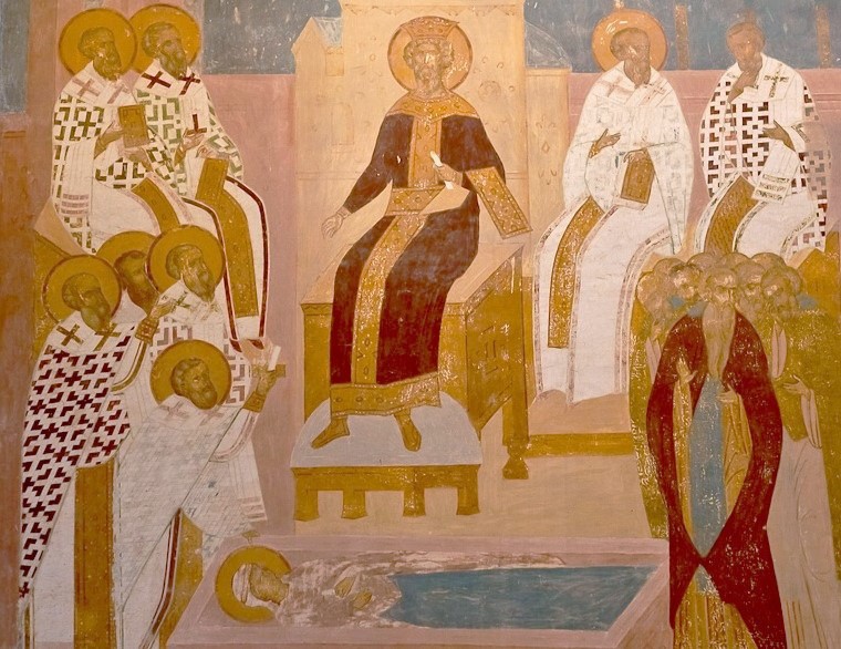 Он проходил в июне 325 года в городе Никее в правление императора Константина Великого. Собор был направлен против лжеучения александрийского пресвитера Ария, который отвергал Божество и предвечное рождение второго Лица Святой Троицы, Сына Божия, от Бога Отца и учил, что Сын Божий есть только высшее Творение. Собор осудил и отверг ересь Ария и утвердил догмат о Божестве Иисуса Христа: Сын Божий есть Истинный Бог, рожденный от Бога Отца прежде всех веков и так же вечен, как Бог Отец; Он рожден, а не сотворен, единосущен с Богом Отцом.