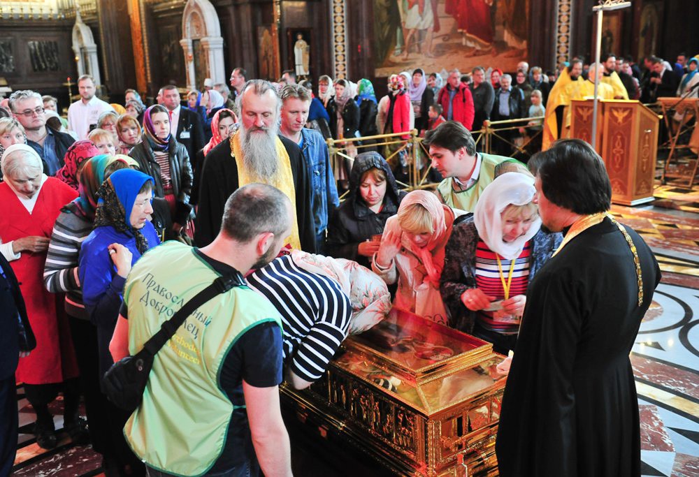 - По благословению Святейшего Патриарха все, кто встал в очередь до ее закрытия (как правило, в 18.00), пройдут к мощам в этот день. Соответственно, встав в очередь, вы можете уже никуда не торопиться и не беспокоиться.