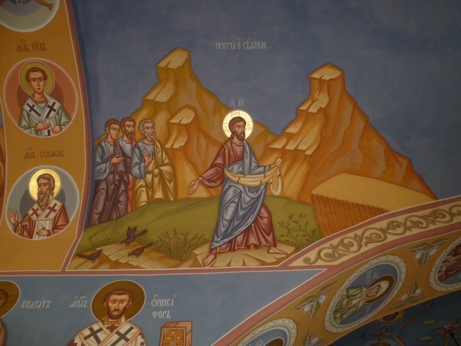 Притча о сеятеле. В.И.Щербинин. Роспись Успенского кафедрального собора г. Иваново. Фото: iv-eparhya.blogspot.ru Однажды, лет тридцать назад, прогуливаясь по Серафимовскому кладбищу, отец Василий Ермаков серьезно посмотрел мне в глаза и сказал строго: «Ты должен полюбить тот мир».