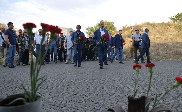 Председник Русије Владимир Путин и председник Владе РФ Дмитриј Медведев, положили су цвеће на спомен плочу меморијалног комплекса „35. Обалске батерије“ који је подигнут у спомен на војнике Приморске армије и морнаре обалске заштите Црноморске флоте. Након што је већи део Црвене армије напустио Севастопољ средином 1942. године, они су наставили да бране град, извештава Kremlin.ru.