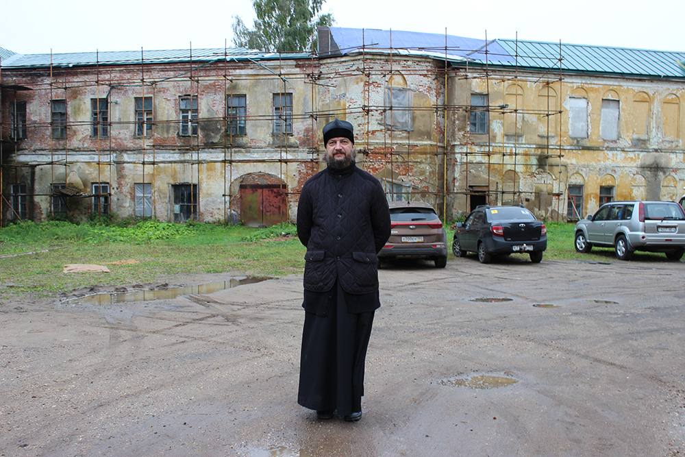 – Вот здесь находился храм Иоанна Богослова, который сгорел, – батюшка показывает на развалины центрального здания семинарии. – Он был открыт уже в новой семинарии, здесь владыка Герман служил…