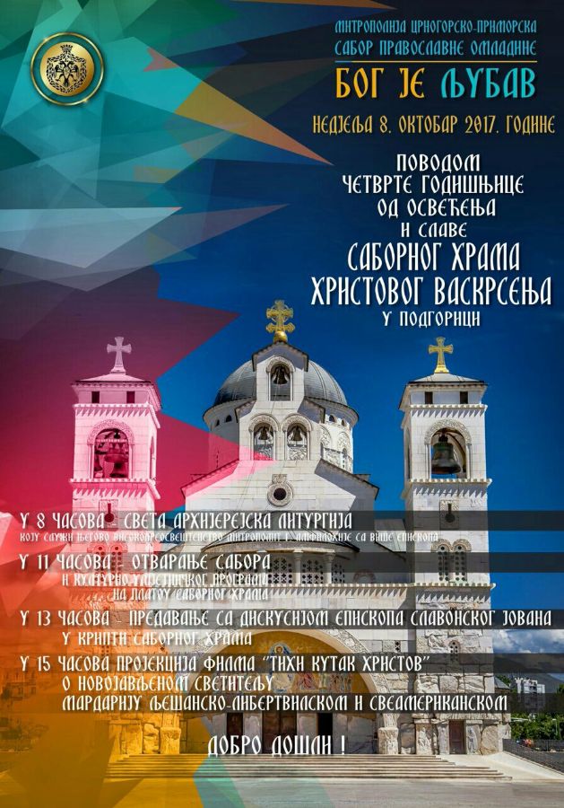 У недељу, 8. октобра, Света Аргхијерејска Литургија у 8:00 часова, Сабор православне средњошколске и студенске омладине – у 11:00 Културно-умјетнички програм, у 13:00 предавање епископа славонског Јована, а у 15:00 приказивање филма „Тихи кутак Христов“, режисера Раја Јеврића који говори о новојављеном светитељу наше цркве Мардарију љешанско-либертвилском и свеамериканском.