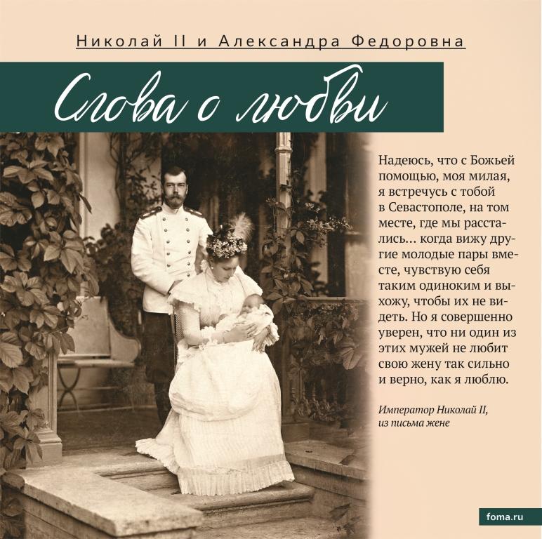 Новые фотографии царственных страстотерпцев и избранные цитаты из их переписки появились на билбордах в разных районах Москвы. Посвященные любви, браку и семейному счастью, цитаты из личного дневника императрицы и ее писем к супругу являются частью проекта «Николай II и Александра Федоровна. Слова о любви», соорганизатором которого выступил Синодальный отдел по взаимоотношениям Церкви с обществом и СМИ.