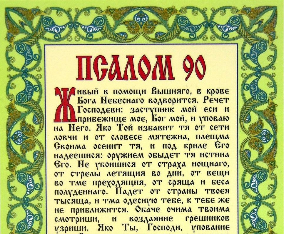 В Псалтири 90-й псалом надписан как «Хвала песни Давидовы», или хвалебная песнь. Фактически это благодарственное песнопение, которое боговдохновенно рисует перед человеком картину того, что Господь верных своих оберегает и защищает от всякого зла.