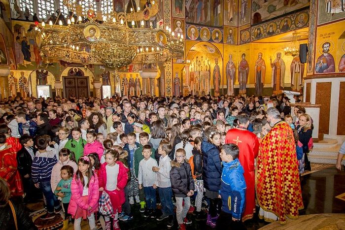 У наставку по завршетку Свете Литургије у крипти Саборног храма евхаристијско заједничарење је настављено кроз славску трпезу коју су чланови храмовног хора припремили за све присутне, а такође је евхаристијско сабрање у крипти Храма било још богатије и за пригодан дјечији програм који су поводом празника Детињаца припремила и извела дјеца школе вјеронауке при Саборном храму Христовог Васкрсења у Подгорици коју већ годинама успјешно воде вјероучитељи Павле Божовић и Ана Ненадић.