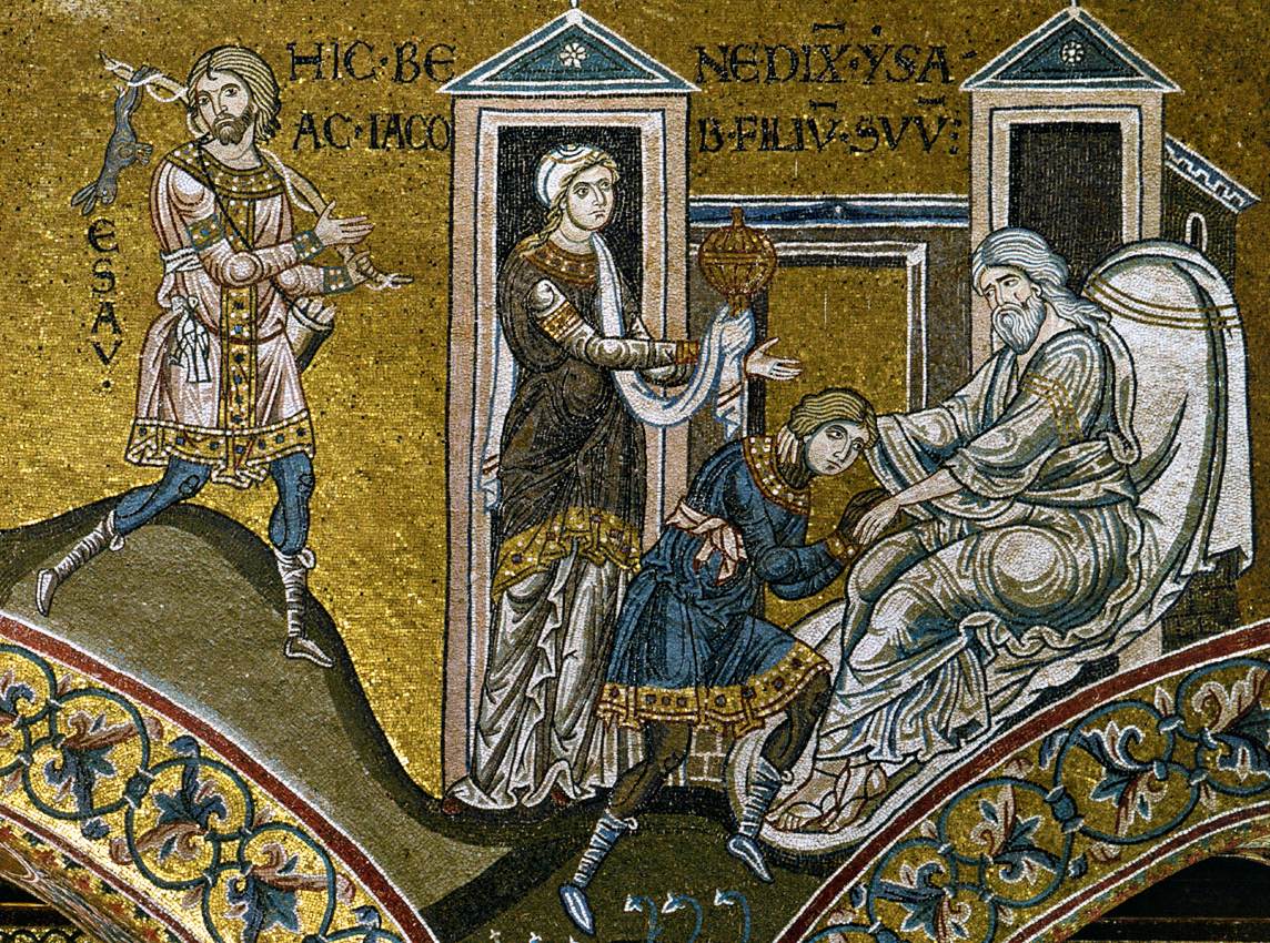 Исаак благословляет Иакова. Собор Монреале. Сицилия. Мозаика. XII век. Исаак благословляет Иакова. Собор Монреале. Сицилия. Мозаика. XII век.