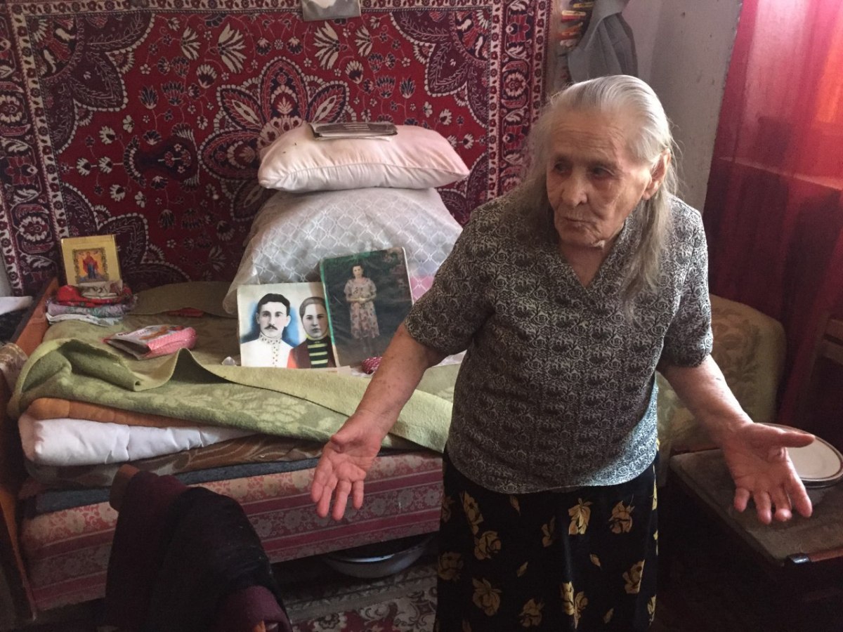 Таисия Андреевна молча стоит в углу коридора. Бабушке сложно говорить о том, что с ней произошло – она лишь вставляет короткие цитаты в рассказ приютившей ее Рабиат. Еще недавно они были соседками, а потом 74-летняя Таисия Андреевна лишилась жилья.