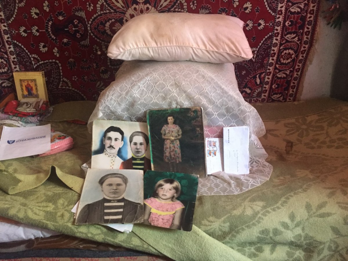 На кровати аккуратно выставлены иконы и фотографии родственников, имена которых Клавдия Дмитриевна вспоминает с трудом. Каждый раз она рассказывает про них разные истории – уже не понять, правда это или выдумка. Бабушка очень старенькая и совсем крошечная. Она почти никого не узнает, но при виде Юли широко улыбается и обнимает ее.