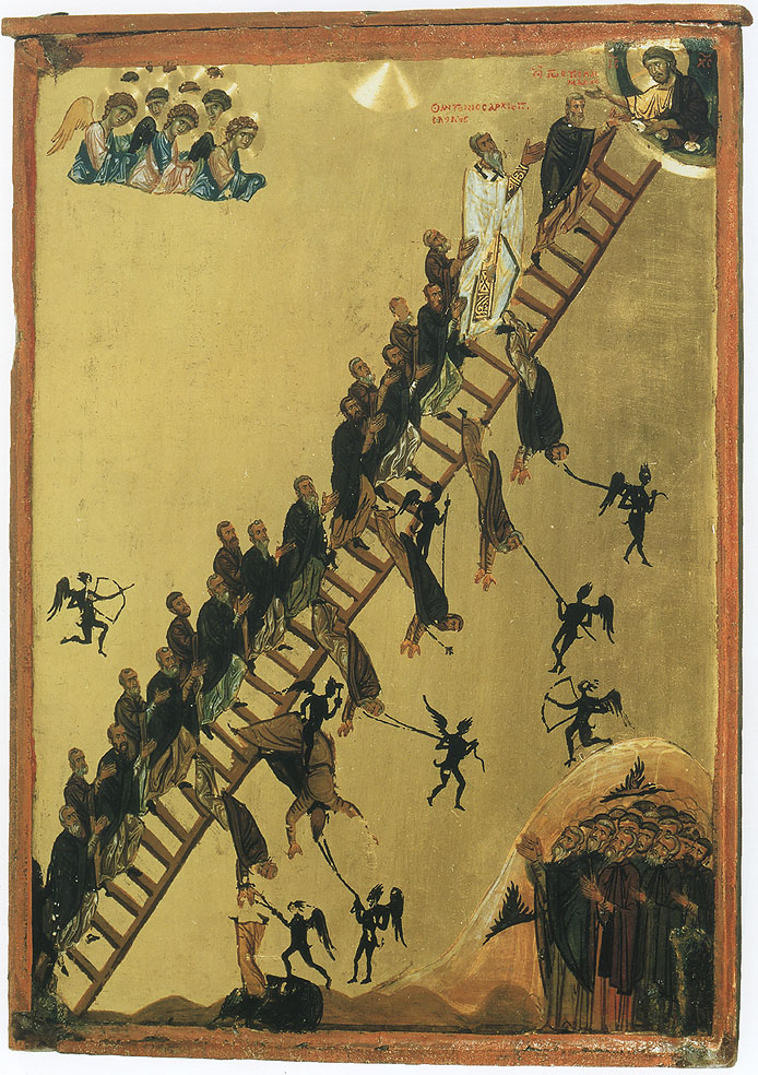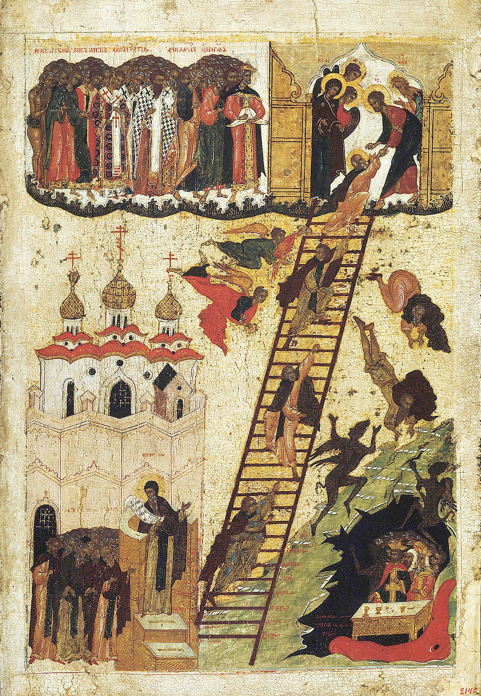 Лествица Иоанна Лествичника Угодник Божий, преподобный Иоанн жил в VI веке, родом Сириец, по своему сочинению названный Лествичником или автором «Лествицы», а по месту благочестивых подвигов – Синаит. На 17 году своего возраста Иоанн принес себя в жертву Богу: тело вознес на Синайскую гору, а душу на гору небесную. Пребыв на Синайской горе в подвигах уединения 19 лет – до сорокалетнего своего возраста, преподобный удалился потом в Синайскую пустыню Фола, отстоящую на 5 стадий от Синайской церкви, и здесь в великих подвигах строгого поста и непрестанной молитвы подвизался 40 лет. В продолжение сей необыкновенной Четыредесятницы пост его был столь же необыкновенен, как и самое продолжение времени его пощения. Хотя преподобный не уклонялся от пищи, разрешенной уставом во время поста, чтобы сокрушить, как он сам говорил, рог гордыни; но принимал ее столь мало, что казался более отведывающим, нежели вкушающим; зато от всякой страсти воздерживался он решительно, повелительно говоря к ней: молчи, онемей! Покаяние его было соединено с глубоким сокрушением сердца и слезами. Долго и после его блаженной кончины показывали под горою весьма тесную пещеру – это сокровенное место подвигов покаяния, которое называют слезоточным, и которое настолько отстояло от общежития, сколько нужно было, чтоб рыдания Иоанна не слышали другие.