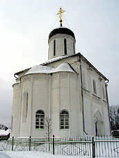 - Успенский собор на Городке (г. Звенигород). Сооружен в 1399-1400 гг. звенигородским князем Юрием Дмитриевичем на своем дворе, внутри крепости. Имел патрональный Георгиевский придел. Сложенный из белого камня в форме куба этот четырехстолпный, одноглавый храм крестовокупольного типа, по своим архитектурному мастерству и изысканности принадлежит к лучшим произведениям раннемосковского зодчества. Интерьер украшен недавно поновленной живописью 1880-х гг., скрывающей остатки фресковой росписи начала XV в. На восточных столпах, стенах, сводах и в барабане раскрыты фрески, выполненные прп. Андреем Рублевым. Иконостас второй половины XIX в. в четыре яруса, стилизован в формах XVII в. В 1918 г. около храма были чудесным образом обретены три иконы прп. Андрея из т.н. «звенигородского чина» - исполненные огромной духовной силы образы Спасителя, Архангела Михаила и Апостола Павла (ныне хранятся в ГТГ). Трехпролетная, двухъярусная звонница перед западным входом в собор выстроена в начале XIX в. по образцу древнерусских колокольниц.