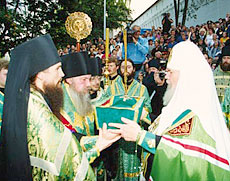 Перенесение мощей прп. Саввы Сторожевского в Саввино-Сторожевский монастырь Святейшим Патриархом Алексием II. |