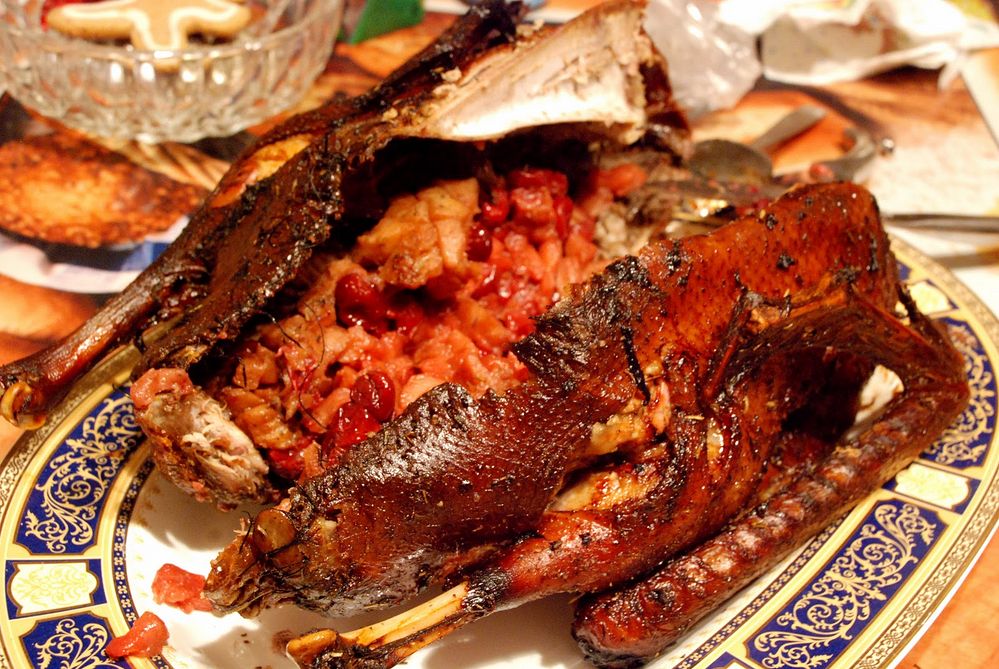 ГУСЬ, ЗАПЕЧЕННЫЙ С ЯБЛОКАМИ И КАРТОФЕЛЕМ