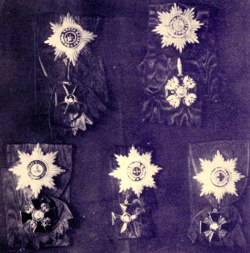 | Ордена святителя Николая Японского: святой Анны 1-й степени, святого Владимира 1-й степени, святого Владимира 2-й степени, святого Александра Невского, святого Александра Невского с бриллиантами |
